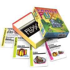 Fluxx is the card game with ever changing rules! It starts out simple, with just the Basic Rule card: draw one card and play one card during each player’s turn. But New Rule cards quickly make things chaotic.