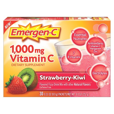 After getting strep throat and a sinus infection just a few weeks before my wedding, I decide I needed to start taking something daily to help boost my immune system. I am like a child and I can not swallow pills so I turned to Emergen-C in Strawberry Kiwi flavor. Now, I know some people think that this is medicine and will help with your flu, it does give you your daily doses of vitamin c which will help with healing but it will not make you completely better.